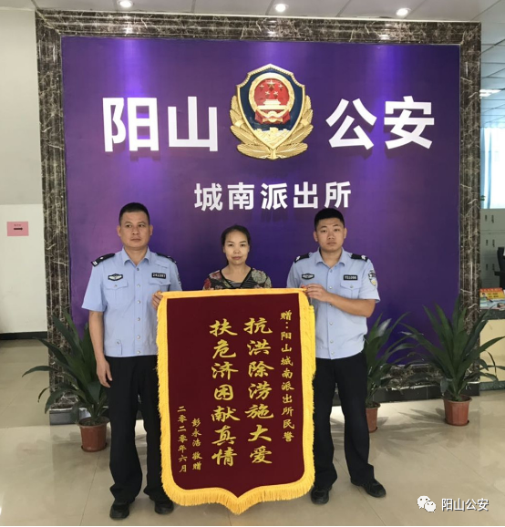 自開展“平安+滿意”創(chuàng)建行動(dòng)以來,城南派出所堅(jiān)持以人民為中心的工作理念,以提高群眾安全感、滿意度為工作目標(biāo),努力提升為民服務(wù)水平,全力維護(hù)轄區(qū)平安穩(wěn)定,取得明顯成效,近日,一名群眾特地來到城南所贈(zèng)送錦旗致謝,表達(dá)了對(duì)城南所工作的高度肯定與認(rèn)可。 今年6月下旬,陽山縣連降暴雨,多地出現(xiàn)汛情。6月26日早上,陽山縣城再次出現(xiàn)了嚴(yán)重內(nèi)澇,大水浸街,水深過膝,群眾生命財(cái)產(chǎn)受到了嚴(yán)重的威脅。當(dāng)日早上九時(shí)許,楊女士焦急地跑到城南派出所求助,稱其丈夫正被洪水圍困在街道水深處的小轎車內(nèi),請(qǐng)求民警救助。警情無小事,群眾安全為大。城南所值班領(lǐng)導(dǎo)楊添濤獲悉情況后,立即帶領(lǐng)值班警員趕到其丈夫被水困住的地方,合力將被困車輛推離涉水地帶,幫助其丈夫和車輛及時(shí)脫離了險(xiǎn)境。楊女士看到丈夫安全脫險(xiǎn),激動(dòng)地對(duì)城南所的民警說:“真是太感謝你們了,你們是群眾的守護(hù)神,我要給你們送錦旗表示感謝”。 7月6日一大早,楊女士特地來到城南派出所給民警送來了一面印有“抗洪除澇施大愛,扶危濟(jì)困獻(xiàn)真情”的錦旗表示感謝。 經(jīng)進(jìn)一步了解,當(dāng)天,在群眾被洪水困住的危急關(guān)頭,城南派出所及時(shí)出動(dòng)警力,不顧危險(xiǎn),共解救被困群眾5人(其中小孩1人)、車輛2輛,用實(shí)際行動(dòng)踐行了人民公安為人民的莊嚴(yán)承諾、守護(hù)了群眾的“平安+滿意”,獲得群眾連連稱贊。