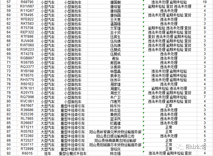 多次違法未處理的重點車輛92臺(截止到2020年7月21日)