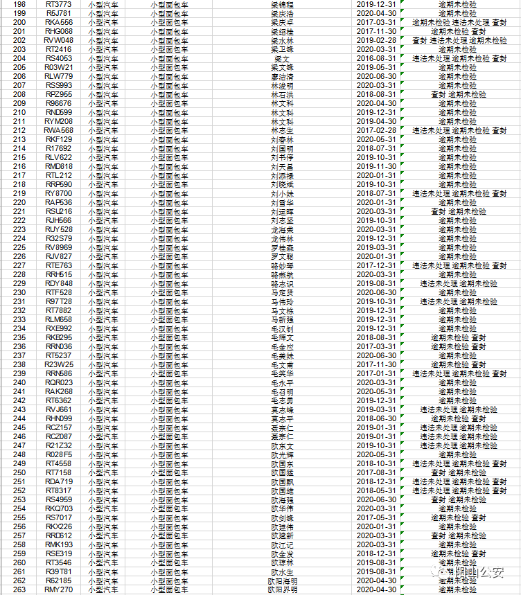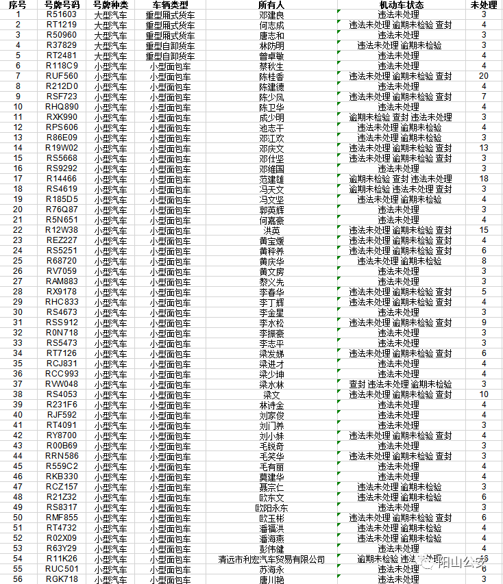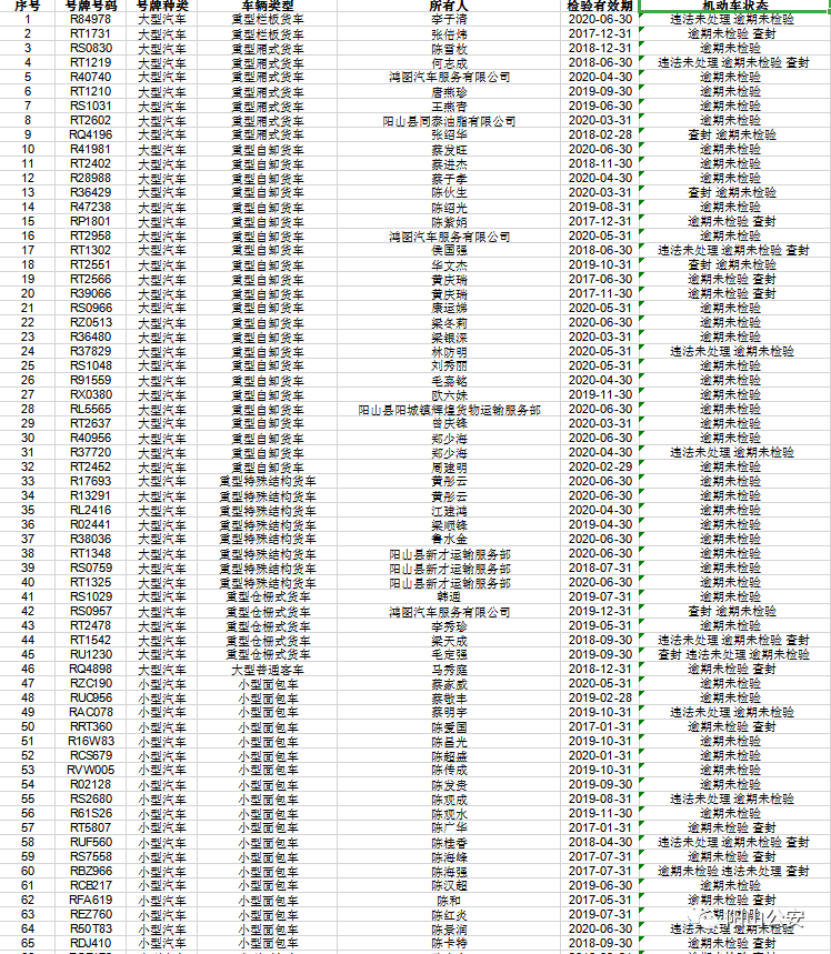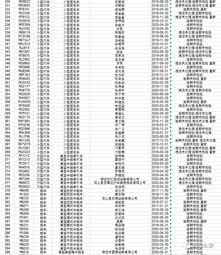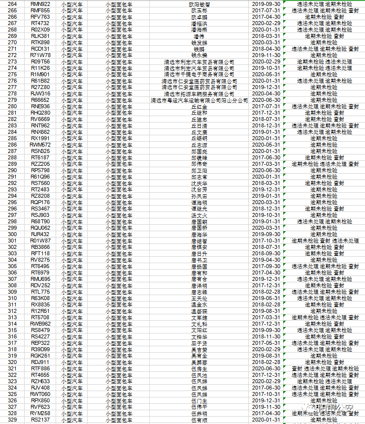 陽山公安提醒 為了保障機動車駕駛員的利益,陽山縣公安局交警大隊督促以上車輛的所屬單位和機動車駕駛人要增強法律意識和交通安全意識,切實加強安全管理,嚴格遵守交通法規(guī),并及時盡早處理車輛交通違法行為,對駕駛的機動車進行年檢,做到安全行車,平安出行! 逾期未報廢的重點車輛9臺(截止到2020年7月21日) 法規(guī)鏈接: 駕駛達到報廢標準的機動車上路行駛,根據(jù)《中華人民共和國道路交通安全法》和《中華人民共和國道路交通安全法實施條例》等相關規(guī)定,公安機關管理部門應當予以收繳,強制報廢,對機動車駕駛員處二百元以上二千元以下罰款,駕駛證扣12分的處罰。 報廢車上路危險大 1.車輛隱患重。報廢車輛因為使用年限時間太長,機件受到嚴重損壞,機動車的操作靈活性、穩(wěn)定性、制動性能等大大降低,事故概率遠遠大于其他車輛,時刻威脅著過往車輛和行人的安全。 2.污染重。 由于報廢車使用年限較長,發(fā)動機嚴重老化,耗油量明顯增多,排放尾氣中污染物嚴重超過國家規(guī)定的汽車排放污染物標準,不僅造成能源浪費,而且嚴重污染了大氣環(huán)境,從而影響到人們的生活質量,不符合環(huán)保要求。 3.逃逸事故多。報廢車輛一旦發(fā)生交通事故,往往肇事逃逸,增加了事故破案率的難度,既便交警找到了車主或駕駛人,但因為車輛沒有保險往往致使受害者得不到應有的賠償,影響了社會的穩(wěn)定。 逾期未檢驗的重點車輛401臺(截止到2020年7月21日) 車輛逾期未檢 嚴重危害交通安全 逾期未檢驗車輛不能定期接受安全技術性能檢驗,安全系數(shù)得不到保障,存在道路交通安全隱患,嚴重的容易導致道路交通事故,造成生命財產損失,危害道路交通安全。 法規(guī)鏈接: 根據(jù)《中華人民共和國道路交通安全法》第十三條,《中華人民共和國道路交通安全法實施條例》第十六條,《機動車登記規(guī)定》第五十六條規(guī)定:機動車未按照規(guī)定期限進行安全技術檢驗的,由公安機關交通管理部門處警告或200元以下罰款。 《機動車駕駛證申領和使用規(guī)定》規(guī)定:上道路行駛的機動車未按規(guī)定定期進行安全技術檢驗的,一次記3分。在檢驗有效期屆滿后連續(xù)3個機動車檢驗周期內未取得機動車檢驗合格標志的,將強制報廢注銷。