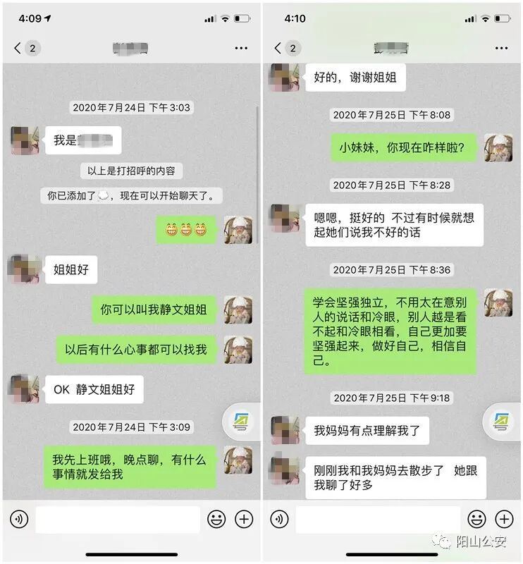 自“平安+滿意”創(chuàng)建工作開展以來,陽山公安始終把“人走近、心貼近”的群眾觀念植根于公安工作中,全力打造“溫度警務(wù)、暖心民警”新形象。近日,城北、太平派出所分別成功高效處置一起少女欲輕生、男孩引發(fā)險(xiǎn)情等事件,將一場場生命悲劇消弭于無形,使群眾感受到了實(shí)實(shí)在在的“平安+滿意”。 7月24日下午14時(shí)許,城北派出所接到一名女孩的求助電話,哭訴稱自己想自殺??紤]到報(bào)警人是名年輕女孩,為使其放下戒備,值班人員迅速通知一名女輔警李靜文與其進(jìn)行深入交談。李靜文耐心地與她溝通交流,讓其敞開心扉,詢問其相關(guān)情況。經(jīng)了解,該女孩是某中學(xué)初二學(xué)生,由于在學(xué)校被同學(xué)排斥、孤立,與家長溝通時(shí),母親并不在意反而責(zé)怪她,因此產(chǎn)生了輕生的念頭。女警耐心地傾聽女孩傾訴,推測她目前是安全的,根據(jù)她的情況給予她一些建議,告訴她生命只有一次,無論發(fā)生什么事,都不能拿自己的生命開玩笑。經(jīng)過近半小時(shí)耐心細(xì)致的開導(dǎo),這名女學(xué)生逐漸平復(fù)了自己的情緒,打消了自殺的念頭,并對女警姐姐的救助表達(dá)了衷心的感謝,表示以后不會(huì)再作出過激的行為。 (女警通過微信不斷開導(dǎo)少女) 隨后,李靜文主動(dòng)添加女孩的微信,對女孩稱生活上遇到了什么事都可以與她聊聊,并多次通過微信詢問女孩的情況,對她進(jìn)行心理疏導(dǎo)。通過李靜文的耐心疏導(dǎo),女孩反映有點(diǎn)理解媽媽了,并與媽媽外出散步,母女關(guān)系有了很大的改善,她的心情也很好了。 李靜文在結(jié)束了與女孩的談話后,立即向所領(lǐng)導(dǎo)匯報(bào),并通過多方渠道查詢到女孩母親的聯(lián)系方式,主動(dòng)聯(lián)系她,并把女孩的情況告知她,細(xì)心叮囑她在以后的生活中,無論工作有多忙,都要關(guān)心女兒的生活,了解她的生活和心理狀況,加強(qiáng)與她的溝通、疏導(dǎo)及監(jiān)護(hù)。生命之可貴和易逝,很多孩子都沒有感知到,需要家長做好引導(dǎo)工作,防止類似情況再次發(fā)生。 7月31日22時(shí)30分許,太平派出所接事主報(bào)稱:其鄰居一14歲少年因與家人吵架后,欲點(diǎn)燃煤氣罐報(bào)復(fù)其母親。派出所民警接報(bào)后,迅速到達(dá)現(xiàn)場處理。經(jīng)了解,該名少年常年輟學(xué)在家,經(jīng)常與父母發(fā)生爭吵,當(dāng)晚因與其母親發(fā)生爭吵后發(fā)生偏激心理,在其母親走回房間之際,從家中客廳抬了兩瓶煤氣到其母親房門前聲稱要放火點(diǎn)燃煤氣罐燒其母親。為進(jìn)一步確保人民群眾生命財(cái)產(chǎn)安全,太平所立即作了周密細(xì)致的緊急部署,科學(xué)安排了三組人員分工協(xié)作,有條不紊地開展工作,一組負(fù)責(zé)勸說該名少年,一組負(fù)責(zé)撤離附近居住的群眾,另一組做好突擊制止準(zhǔn)備。在該名少年打開煤氣閥門即將點(diǎn)燃打火機(jī)一剎那,突擊組成員火速?zèng)_前將其成功控制,及時(shí)制止了險(xiǎn)情的發(fā)生。 (民警對少年開展勸導(dǎo)教育) 民警在與該名少年談心得知:其去年輟學(xué)后,一直在家無所事事,與其母親朱女士經(jīng)常因瑣事發(fā)生爭吵打斗,遂對母親十分怨恨,由于當(dāng)晚飯后朱女士一直對其嘮叨,點(diǎn)燃了此次事件的導(dǎo)火線。經(jīng)民警對其耐心勸說,該名少年主動(dòng)向其母親認(rèn)錯(cuò),并保證以后會(huì)通過加強(qiáng)溝通解決家庭糾紛,朱女士對于其兒子的真心悔過感到欣慰,并接連向派出所道謝,感謝派出所幫忙緩解了母子緊張之情及不顧安危快速化解此次險(xiǎn)情。8月1日,朱女士還致電清遠(yuǎn)市12345政府服務(wù)熱線,反映表揚(yáng)太平派出所。