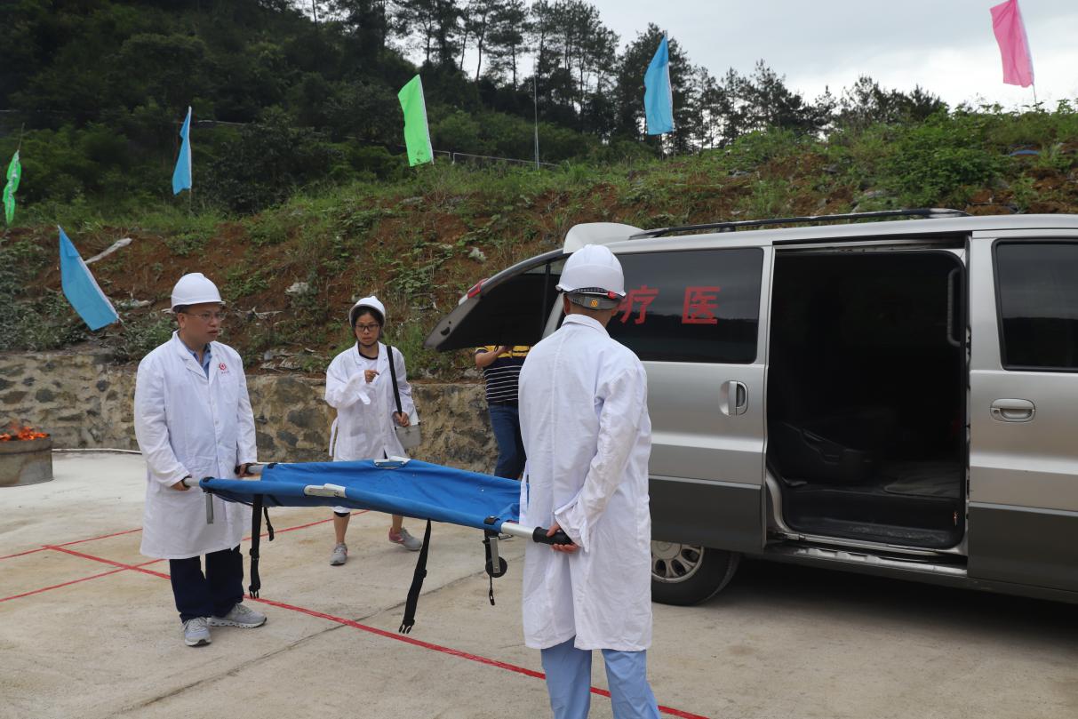 本次演練以陽(yáng)山分公司民爆倉(cāng)庫(kù)周邊發(fā)生不明火災(zāi)事件為模擬情景,監(jiān)控室拉響紅外線入侵警報(bào),倉(cāng)庫(kù)負(fù)責(zé)人立即打電話報(bào)告分公司負(fù)責(zé)人,分公司負(fù)責(zé)人立即向總指揮以及110報(bào)告,總指揮了解到情況緊急,立即啟動(dòng)公司應(yīng)急預(yù)案。命令現(xiàn)場(chǎng)指揮立即組織救援隊(duì)伍實(shí)施救援行動(dòng)。消防滅火組利用滅火器、水帶連接消防栓向火災(zāi)現(xiàn)場(chǎng)噴射救援;危險(xiǎn)品轉(zhuǎn)運(yùn)組將倉(cāng)庫(kù)的危險(xiǎn)品轉(zhuǎn)運(yùn)到安全地點(diǎn);現(xiàn)場(chǎng)警戒組在現(xiàn)場(chǎng)周圍拉上警戒線,防止無(wú)關(guān)人員進(jìn)入;醫(yī)療救護(hù)組將受傷人員救離事故現(xiàn)場(chǎng);物資供應(yīng)組將消防器材送到現(xiàn)場(chǎng)備用;一場(chǎng)防災(zāi)減災(zāi)救災(zāi)模擬演練正在緊張而秩序進(jìn)行中。