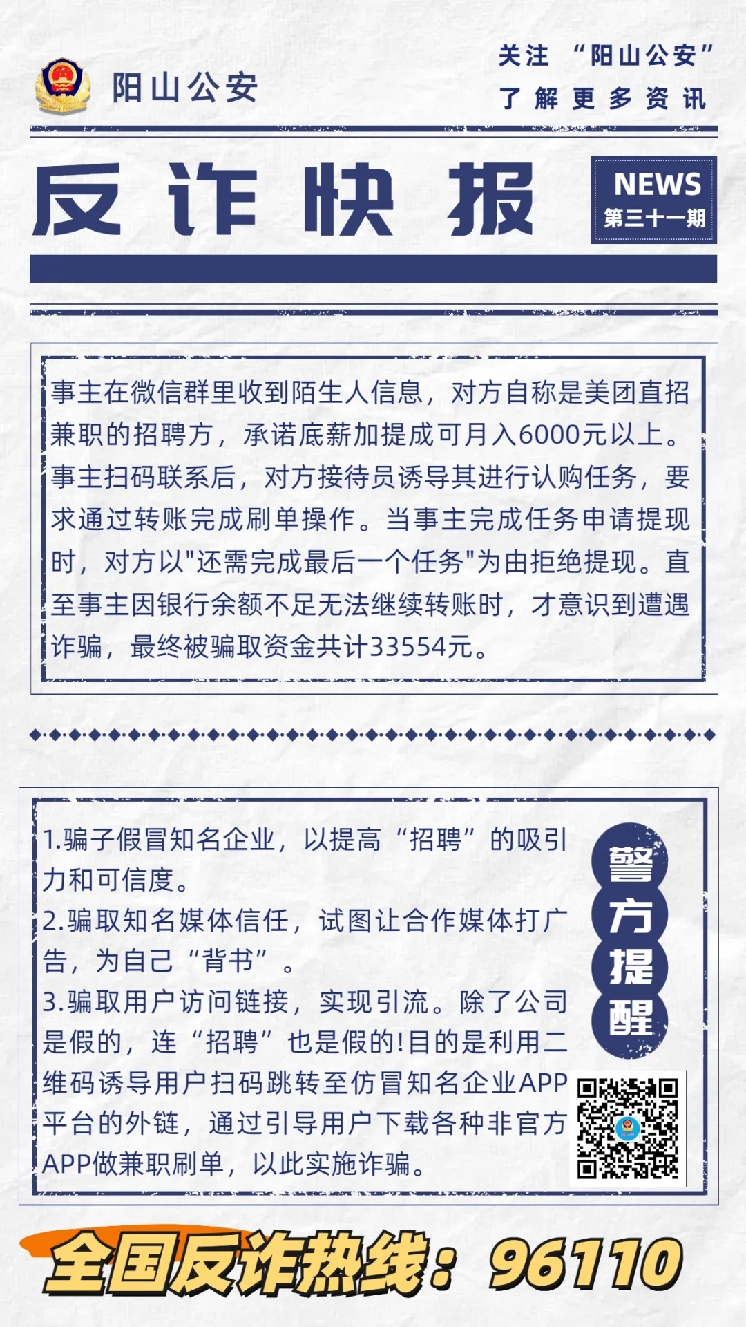 【反詐快報(bào)31期】警惕不法分子冒充美團(tuán)虛假招聘,防范新騙術(shù)!