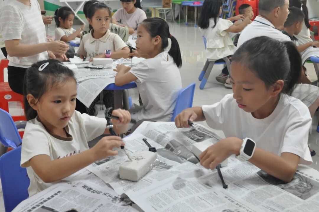 活動現(xiàn)場為每個家庭準備了兵馬俑的手工材料。孩子們化身 “小小考古學家”,體驗真實考古的嚴謹與樂趣:先用竹簽輕輕鑿開石膏表面的 “覆土”,遇到堅硬處可適量加水降低難度,避免損壞內部的 “陶俑”;再用刷子細細清掃掉落的土塊,看著 “陶俑” 的輪廓一點點顯露;最后徹底清理殘留粉塵,一件親手挖掘的 “兵馬俑” 就完整呈現(xiàn)。這份 “考古成果” 既能擺在家中當裝飾,也能送給親友,讓千年秦韻成為身邊的紀念。