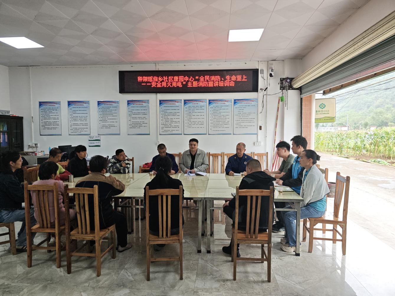 為推進“119消防宣傳月”活動深入開展,進一步加強康園中心安全管理,11月7日,秤架瑤族鄉(xiāng)組織專職消防隊、社工站到社區(qū)康園中心開展“全民消防、生命至上——安全用火用電”主題消防宣講培訓會?;顒油ㄟ^知識講解與實操演練相結(jié)合的方式,切實提升康園中心工作人員和服務(wù)對象的消防安全意識和應(yīng)急自救能力。